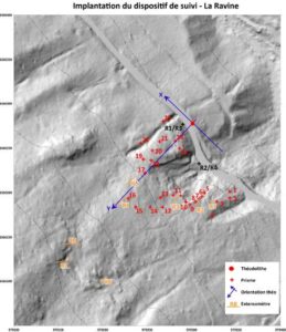 - 25 cibles mesurées toutes les heures par un théodolite automatisé.